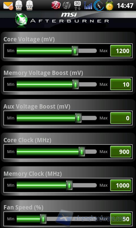 Per overcloccare la scheda video abbiamo utilizzato l'ottimo MSI Afterburner aggiornato all'ultima versione disponibile: l'erede di Riva Tuner è probabilmente il più completo e utilizzato software per l'overclock delle schede video. Per poter overvoltare le schede video bisogna autorizzare il programma, essendo una procedura rischiosa infatti bisognerà prima confermare di essere consapevoli di ciò che si sta per fare; inoltre è possibile sbloccare le impostazioni per l'overclock avanzato: le case produttrici infatti pongono dei limiti all'overclock effettuabile, ma è possibile bypassare queste restrizioni cambiando una voce nel file di configurazione di Afterburner, in questo caso comunque non abbiamo spinto la 7850 oltre i limiti consentiti. Sarà anche possibile overcloccare la scheda video attraverso il proprio cellulare utilizzando una connessione Wi-Fi e l'app gratuita Afterburner disponibile nel Play Store Android.